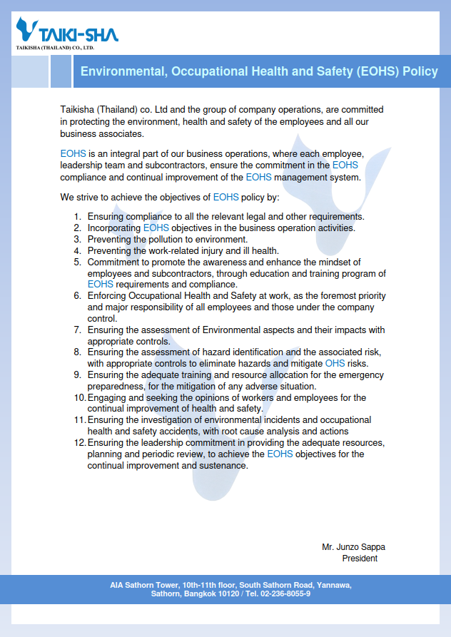 TVE strives to build an environment within which individual safety attitudes develop and persist and safety behaviors are promoted. While working to recruit and train employees from diverse backgrounds and promoting them to important positions, TVE works hard to build a safe and healthy workplace for employees, colleagues and the community by taking effective preventive and protective measure.